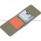 Компактный кошелек-кардхолдер для банковских карт, проездного и иных плоских предметов схожего формата. Кардхолдер выполнен в виде "раскладушки", внутри которой расположены четыре прорезных отделения для размещения карточек. На внешней стороне есть небольшая панель велкро. Кошелек изготовлен из прочной ламинированной нейлоновой ткани.