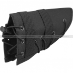 Накладка на приклад (щека) боевого, охотничьего и страйкбольного оружия. На внешней стороне нашито 2 ряда ячеек стандарта PALS/MOLLE, что даёт возможность разместить на прикладе дополнительный подсумок под магазин, ИПП или с ремкомплектом. За счет того, что ячейки расположены с двух сторон, накладку может использовать как правша, так и левша. В среднем слое щеки установлен наполнитель – тонкая пенка. Она дополнительно защищает приклад от ударов и повреждений.