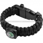 Браслет из паракорда с дополнительным функционалом в виде компаса, свистка и огнива. Свисток и огниво интегрированы в пластиковую фастекс-застежку. Цвет – черный (black).