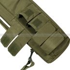 Оружейный чехол с полумягким корпусом для оружия длиной до 95 см. Внешняя часть чехла выполнена из нейлона. Внутри смягчающая вставка из волнистого поролона. На корпусе имеется 4 отделения для размещения магазинов для оружия М-серии (либо сходных по размеру магазинов. Под магазины АК отделения не подходят), а так же одно большое отделение на молнии. Чехол застегивается на молнию, имеется ручка для переноски в руках и ремень для ношения на плече.