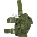 Большая, универсальная кобура для крупных моделей пистолетов, а также для компактных моделей короткоствольного оружия (например, MP5 Kurz без передней тактической рукояти). Регулировка размера кобуры осуществляется за счет липучки, расположенной внутри корпуса. Вооружение плотно и надежно фиксируется в кобуре за счет ремней-удержателей с настраиваемой длиной. К корпусу пришиты 3 подсумка разного размера для сменных магазинов, фонарика, ножа и иных небольших предметов. Прочный, износостойкий пошив.