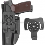 В комплекте с кобурой идут 2 крепления типа "краб" (большое и малое). Кобуру можно носить как на поясе, так и на разгрузочном жилете или набедренной платформе. Есть возможность поворота угла наклона кобуры.