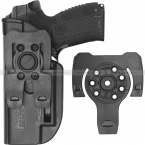 В комплекте с кобурой идет 2 крепления типа "краб" (большое и малое). Кобуру можно закрепить на поясе или MOLLE-совместимом снаряжении. Есть возможность регулировки угла наклона кобуры.