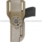 Тактическая кобура серии Альфа, предназначенная для Пистолета Ярыгина (ПЯ). Она поставляется с выносным креплением (полицейским), которое можно установить на поясной ремень шириной до 50 мм. Эта кобура подходит для использования не только с огнестрельными пистолетами, но и со страйкбольными или пневматическими ПЯ. Корпус кобуры изготавливается из высокопрочного пластика методом литья. Фиксатор кобуры защелкивается вокруг спусковой скобы, обеспечивая надежное удержание пистолета. Чтобы извлечь пистолет, достаточно нажать на кнопку. Угол наклона кобуры также можно регулировать.