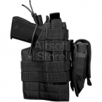 Кобура от компании Condor Outdoor для Beretta M9. Крепится вертикально к любой MOLLE-системе. Очень жесткий, прочный и надежно сшитый корпус. Пистолет крепко фиксируется в кобуре. На корпусе нашиты MOLLE-стропы для крепления дополнительного снаряжения. В комплекте идет 1 подсумок для магазина на пистолет. Фиксирующие MOLLE-стропы могут быть закреплены с любой стороны кобуры, что делает её универсальной как для правшей, так и для левшей.