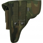 Кобура для пистолета АПС с возможностью крепления к разгрузке или к поясу благодаря МОЛЛЕ стропам, расположенным на задней стороне кобуры. Кобура изготавливается в России, пошита точно под размеры пистолета, благодаря чему оружие сидит внутри очень плотно. Имеется ремень для фиксации пистолета. Сверху кобура закрывается клапаном. Сбоку на корпусе пришит подсумок для запасного магазина. Кобура отличается высоким качеством пошива.