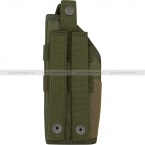 На обратной стороне кобуры расположены крепления MOLLE. Благодаря им кобуру можно закрепить в удобном месте на разгрузочном жилете, тактическом поясе или обычном поясном ремне.