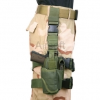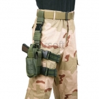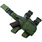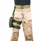 Универсальная набедренная пистолетная кобура. Принцип универсальности достигается за счет застежки-липучки вокруг кобуры, благодаря которому кобуру можно настроить под требуемые размеры пистолета, включая модели с лазерными ц/у и фонарями. Пистолет надежно фиксируется в кобуре. Кобура крепится на бедро двумя ремнями, а также одним ремнем к поясу.