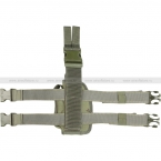 На оборотной стороне к корпусу кобуры пришита система крепления: одним ремнем кобура крепится к брючному ремню или к ячейкам МОЛЛЕ тактического пояса; двумя ремнями крепится к бедру. Чтобы кобура не скользила и не сползала вниз, внутренняя поверхность набедренных ремней прорезинена. При необходимости за счет фастексов кобуру можно быстро снять с бедра.