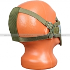 Защитная маска для игры в страйкбол. Корпус маски выполнен из прочной стальной сетки, по краям идет клееный тканевый кант. Маска оливкового цвета, имеет нанесение белым в виде черепа.
