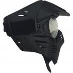 Полнолицевая, защитная маска. Может применяться как в страйкболе, как и пейнтболе. Корпус маски изготовлен из качественного TPU-пластика, линзы из оптического поликарбоната. Маска надежно защищает всё лицо, лоб, уши, есть подвижная накладка для защиты части шеи. Очки интегрированы в маску, но при желании могут быть отсоединены. Внутри, в месте соприкосновения зоны вокруг глаз и маски, имеются смягчающие поролоновые вставки.
