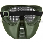 Защитная маска для лица. Корпус выполнен из мягкого пластика, перфорированная сетка на глазах. Хорошая вентиляция. Фиксируется на голове с помощью эластичной резинки, длина которой регулируется. При желании, нижнюю часть маски можно снять.