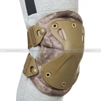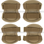 Комплект наколенников и налокотников с защитной чашечкой Х-образной формы. Корпус наколенников и налокотников изготовлен из плотной нейлоновой ткани, средний слой из упругой пенки, которая поддерживает сустав и смягчает удары. Внутренняя поверхность выполнена из мягкой, ворсистой ткани для отведения влаги и комфортного ношения. На внешней стороне на 6 заклепках закрепляется защитная чашечка из ударопрочного пластика / плотной резины (материал зависит от партии).