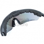 Оправа достаточно жесткая, благодаря чему очки плотно прилегают к лицу и фиксируются. Для комфорта ношения в области лба есть рифленая поролоновая вставка, а дужки имеют резиновые вставки в области ушей. Поликарбонатные линзы протестированы производителем на предмет соответствия стандарту ANSI Z 87.1, 2003 Lens impact test.