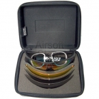 Защитные, противоосколочные тактические очки. Удобно сидят на лице. В комплекте идет 4 сменные линзы для игры в разных условиях (при разном освещении). Обеспечивают надежную защиту глаз от фронтальных и боковых угроз.
