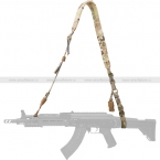 Универсальный оружейный ремень из прочных и оригинальных материалов. Ремень является классической "двухточкой" с возможностью переключения на одноточечный вариант. Спереди петля крепится к антабке, сзади стропа затягивается вокруг основания приклада или устанавливается в специализированное отверстие на самом прикладе. Ремень настраивается по длине. Мягкий, широкий погон снижает нагрузку на плечи компенсируя часть веса оружия.