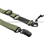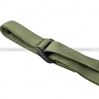 Страйкбольная реплика двухточечного оружейного ремня. Ремень изготовлен из не рвущегося и особопрочного нейлона. Прочная и надежная строчка. Металлические карабины с надежной системой защиты от самопроизвольного открытия. На корпусе ремня располагается специальная петля для быстрого изменения длины ремня (сокращение/увеличение). Сам ремень может быстро конфигурироваться как в двухточечный, так и в одноточечный вариант.