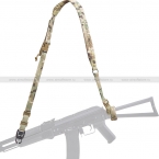 Универсальный ремень для оружия TS-114 оснащен двумя точками крепления. Спереди он присоединяется к антабке с помощью стального карабина, а сзади крепится к прикладу через универсальный обхват. При необходимости ремень можно преобразовать в одноточечный, оставив крепление только к прикладу.