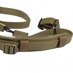 Мягкий расширительный погон распределяет вес оружия на шею и плечи. Особая конструкция ленты подтяга позволяет быстро переводить оружие в необходимое положение: боевое, походное, патрульное. Лента ремня и фурнитура выполнены из качественных материалов.