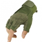 Тактические перчатки для игры в страйкбол. Беспалые, не препятствуют мелкой моторике пальцев. Надежно защищают ладонь и кисть от различных небольших травм. На кастете и фалангах есть защитные, смягчающие вставки. Замшевая ладонь обеспечивает надежный контакт с оружием. Перчатки надежно фиксируются на запястье, кроме того, есть возможность регулировки объема перчаток в районе пястных костей за счет велкро-липучки. За счет фиксации на двух липучках полностью настраиваются под анатомические особенности кисти руки. Хорошо вентилируются, удобно сидят на руке.