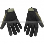 Ладонь выполнена из искусственной замши и усилена накладками, которые улучшая сцепление с объектами в руках, поглощают вибрацию и удары, увеличивают срок службы изделия. На внутренней поверхности дистальной фаланги большого и указательного пальцев нанесено противоскользящее покрытие в виде полосок. Внешняя сторона ладони перчаток изготовлена из дышащего синтетического материала.