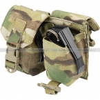 Гранатный подсумок с двумя отделениями, сшит из оригинального, износостойкого нейлона Cordura. В каждое отделение помещается по одной ручной гранате (как боевой, так и страйкбольной). Клапан застегивается на фастекс, при этом сам фастекс закреплен на стропе и есть возможность регулировки его положения. За счет этого можно регулировать высоту подсумка под конкретную гранату.