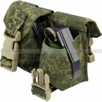 Двойной подсумок для размещения боевых и страйкбольных ручных гранат практически любого размера. Закрывающий клапан оборудован фастекс-застежкой, закрепленной на стропе: изменяя длину стропы можно настраивать подсумок под габариты конкретной гранаты.