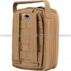 Отрывной медицинский подсумок от компании Ars Arma, модель AA-WAS. Изделие представляет собой платформу с креплением на MOLLE и сумку (подсумок), которая крепится на неё и фиксируется стропой на липучке. При необходимости можно отстегнуть стропу и сорвать подсумок с платформы для использования.