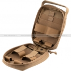 Молния позволяет практически полностью раскрыть подсумок. Медикаменты и перевязочный материал можно упорядочить внутри отделения за счет нашитых карманов и эластичных лент.