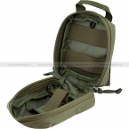 Вместительная и функциональная отрывная аптечка от компании Ars Arma. В основе конструкции лежит платформа, закрепляемая на снаряжении на MOLLE, и непосредственно сам подсумок, который устанавливается на платформу, но в случае необходимости его можно сорвать и начать использовать. Подсумок крепится на платформе за счет липучки и дополнительно страхуется стропой с фастексом.