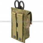 Медицинский подсумок для перевязочных материалов и лекарственных препаратов. Внутри подсумка вшита специальная широкая стропа, потянув за которую можно быстро извлечь содержимое. Снаружи, по бокам, нашиты стропы для жгута или иного снаряжения. Под медицинские ножницы есть отдельное отделение.