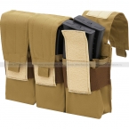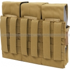Тройной подсумок для шести магазинов серии АК и их аналогов, по два в каждом отделении. Отделения оснащены клапаном с застёжкой-липучкой, который при необходимости можно отрегулировать по высоте или полностью убрать внутрь. Такая конструкция позволяет быстрее извлекать магазины, при этом надёжно фиксируя их с помощью широкой эластичной резинки, охватывающей отделения. Внутри отделения не разделены перегородками.