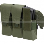 Тройной подсумок для шести магазинов серии АК и их аналогов, по два в каждом отделении. Отделения оснащены клапаном с застёжкой-липучкой, который при необходимости можно отрегулировать по высоте или полностью убрать внутрь. Такая конструкция позволяет быстрее извлекать магазины, при этом надёжно фиксируя их с помощью широкой эластичной резинки, охватывающей отделения. Внутри отделения не разделены перегородками.