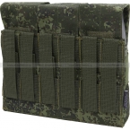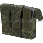Тройной подсумок для шести магазинов серии АК и их аналогов, по два в каждом отделении. Отделения оснащены клапаном с застёжкой-липучкой, который при необходимости можно отрегулировать по высоте или полностью убрать внутрь. Такая конструкция позволяет быстрее извлекать магазины, при этом надёжно фиксируя их с помощью широкой эластичной резинки, охватывающей отделения. Внутри отделения не разделены перегородками.