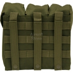 Оружейный подсумок для магазинов серии АК. Каждое из трёх отделений вмещает до 3х магазинов. Суммарная вместимость – до 9 магазинов. Отделения надежно закрываются на клапан на липучке с кнопкой. Подсумок прочно пошит из износостойких материалов. Крепится к любой MOLLE-системе.
