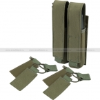 Каждое отделение подсумка вмещает по 1 магазину от пистолета-пулемета серии MP5, Витязь или их аналогов. В комплекте идет 2 типа фиксаторов магазина внутри отделения: клапан на велкро-липучке и эластичная резинка с "пулером".