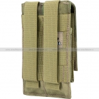 Подсумок с креплением MOLLE с двумя отделениями для размещения магазинов от большинства моделей современных пистолетов. Содержимое удерживается резинкой, а сверху отделение закрывается клапаном на липучке.