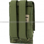 Магазины надежно удерживаются внутри за счет резинки и клапана на липучке. Подсумок крепится на любом МОЛЛЕ-совместимом снаряжении, занимая 2 ячейки в ширину.