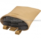 Подсумок под сброс является одним из самых востребованных элементов снаряжения, т.к. служит для сбора пустых (отстрелянных) магазинов. Подсумок закрепляется на снаряжении к ячейкам MOLLE или к брючному ремню. Пластиковая вставка держит горловину приоткрытой для удобства сброса. Подсумок вмещает около 8 магазинов. В верхней части есть мембрана с затягивающейся кулиской, чтобы уберечь магазины от случайной утери.