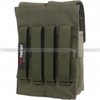 Подсумок с клапаном, предназначенный для магазинов серии АК и подобных им моделей. Вмещает до четырех магазинов, по два в каждом отделении. Каждое отделение закрывается клапаном с липучкой для надежной фиксации. Внутри предусмотрена несъемная перегородка между магазинами, а снаружи отделение опоясано широкой резинкой, которая обеспечивает более плотное удержание. Подсумок крепится на MOLLE.