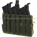 Надежный и практичный открытый подсумок для трёх стандартных магазинов серии АК, M4/AR15 или других схожих по размеру. Фиксация магазинов осуществляется эластичным жгутом с пуллером. Крепится подсумок на снаряжении с помощью системы MOLLE, занимая шесть ячеек по ширине.