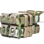 Комплект оружейных подсумков открытого типа FastMag, состоящий из двух отделений. Отделения могут быть как соединены между собой, так и закреплены на разгрузку по отдельности по системе MOLLE. Корпус отделений изготовлен из прочного полимерного пластика и состоит из двух "половинок", плотно стягиваемых эластичными жгутами, опоясывающими отделения. Подобная конструкция, с одной стороны, позволяет надежно удерживать магазины внутри, исключая их самопроизвольное выпадение, а с другой, позволяет быстро и удобно извлекать их при необходимости.