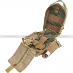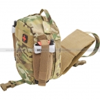Большая отрывная аптечка для оказания неотложной помощи в полевых условиях. Конструкция изделия состоит из платформы, которая устанавливается на снаряжении на MOLLE, и отрывной сумки с медикаментами, которая крепится к платформе при помощи текстильной липучки с дополнительной страховкой в виде стропы на фастексе.