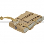 Открытый оружейный подсумок под один магазин серии АК, M4/M16 и аналогичных им по размерам. Тканевые стенки усилены прочными пластиковыми вставками. Боковая рамка из полимера спроектирована для магазинов серии АК: на внутренней стороне, в нижней части, есть выступы для более надежной фиксации "зубов" магазина. Подсумок крепится на MOLLE.
