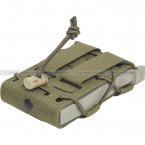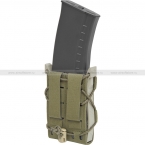 Подсумок открытого типа предназначен для одного магазина серий АК, M4/M16 и других схожих по габаритам моделей. Стенки изготовлены из ткани с дополнительным усилением в виде прочных пластиковых вставок. Полимерная боковая рамка специально разработана для магазинов АК-серии и оснащена внутренними выступами в нижней части, которые обеспечивают надежное удержание "зубьев" магазина. Для крепления подсумка на снаряжении используется система MOLLE.