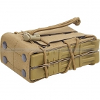 Качественный и прочный оружейный подсумок быстрого типа от компании Ars Arma. В каждое из отделений можно поместить по одному магазину АК, М-серии, АС ВАЛ / ВСС и аналогичные по габаритам. Объем отделений и плотность удержания магазинов регулируется эластичной резинкой, опоясывающей подсумок. Крепление подсумка на снаряжении осуществляется за счет строп интерфейса MOLLE, расположенных на обратной стороне.