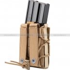 Тканевые стенки из прочного нейлона и пластиковая рамка стягиваются эластичным жгутом. Длина жгута настраивается, за счет чего изменяется объем подсумка для подгонки под конкретную модель магазина. Нашитые на обратной стороне стропы MOLLE позволяет крепить подсумок на любом совместимом снаряжении.