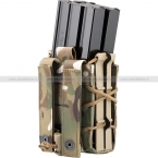 Оружейный подсумок с двумя отделениями для размещения магазинов серии АК (а также РПК, Вепрь, Сайга), М4/М16, АС Вал и ВСС Винторез, AUG и большинства других магазинов от современных моделей огнестрельного оружия и его страйкбольных копий. В отличие от текстильных подсумков, в подсумках открытого типа извлечение магазина занимает считанные мгновения и производится фактически бесшумно. Оба фактора крайне важны в условиях боя.