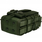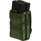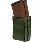 Сдвоенный оружейный подсумок быстрого доступа. Позволяется быстро размещать и извлекать магазины большинства моделей современного вооружения. Конструкция подсумка, в основе которой лежит пластиковый каркас и утягивающие жгуты, позволяет настраивать его практически под любые магазины и надежно удерживать их, исключая возможность самопроизвольного извлечения.