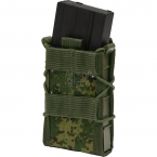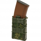 Высококачественный открытый оружейный подсумок. Корпус выполнен из синтетического волокна прочностью 1000D. Каркас изготавливается из ударопрочного пластика. За счет пластикового каркаса магазины четко размещаются внутри подсумка и извлекаются из него, не цепляясь за края. Длину опоясывающего жгута можно настраивать, за счет чего подсумок подходит для размещения магазинов от большинства современных штурмовых винтовок и иного огнестрельного оружия.